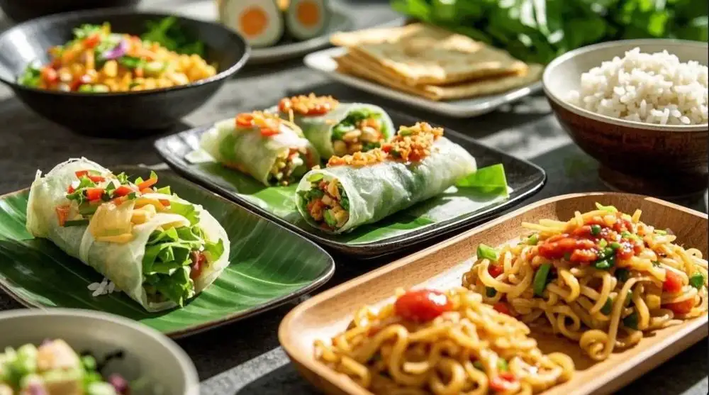 - Popiah: Fresh spring rolls filled with julienned vegetables, tofu, and sweet chili sauce.